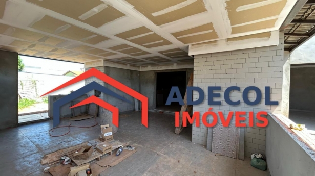 Descrição: Residência com garagem coberta para dois carros, duas suítes, banheiro social, sala e cozinha conjugadas com balcão, jardins laterais, churrasqueira. A casa em fase de acabamento conta com porcelanato, gesso, portão eletrônico e iluminação em led. Ótima oportunidade de aquisição!