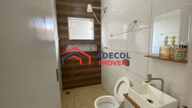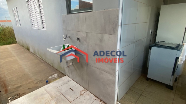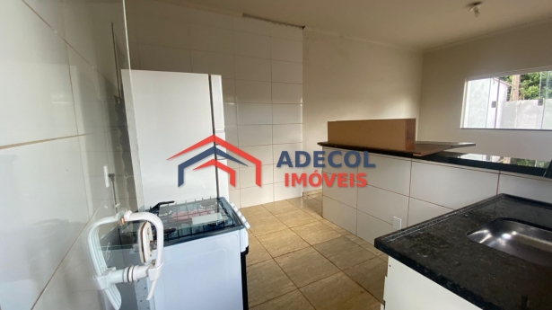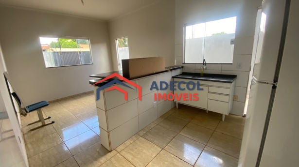 Descrição: Imóvel com dois quartos, sala, cozinha com balcão e armário, banheiro, lavanderia, garagem cimentada para até dois carros e quintal nos fundos. A casa possui cozinha e banheiro em azulejo e laje em todas as dependências.
