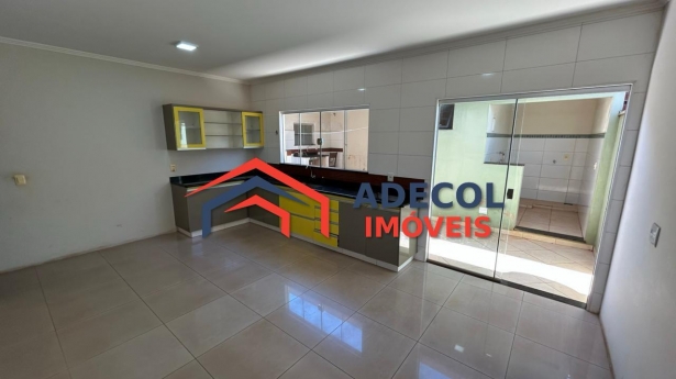 Descrição: Casa com três quartos, sala, banheiro interno e externo, lavanderia coberta, área de lazer com churrasqueira, quarto de despejo aos fundos com blindex, garagem coberta para até dois carros, corredor lateral. O imóvel possui armários embutidos na cozinha, porcelanato, laje e acabamento em madeira. Residência situada próxima a escolas, posto de saúde e demais estabelecimentos da cidade