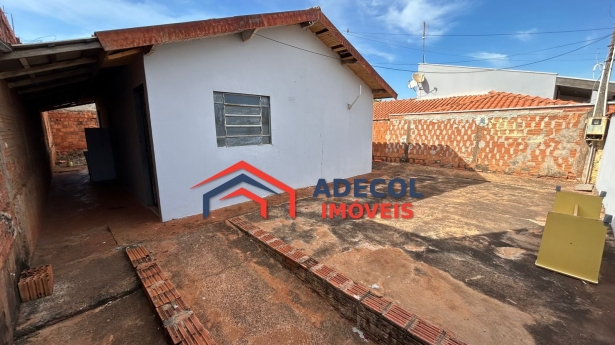 Descrição: Imóvel com três quartos, sala, cozinha, banheiro, lavanderia coberta, amplo espaço cimentado ao redor do imóvel e espaço de terra aos fundos. Residência próximo a escolas, posto de saúde e lanchonete.
