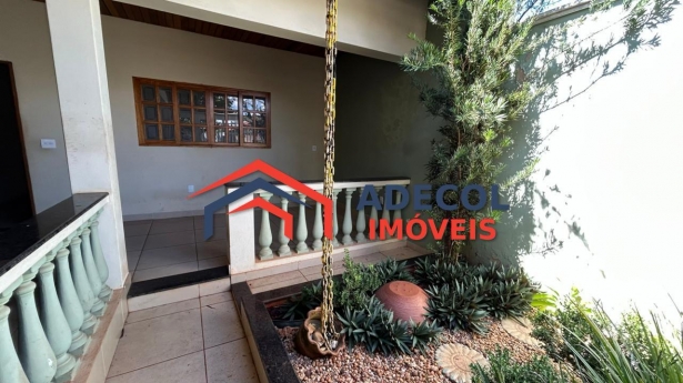 Descrição: Casa com três quartos, sala, banheiro interno e externo, lavanderia coberta, área de lazer com churrasqueira, quarto de despejo aos fundos com blindex, garagem coberta para até dois carros, corredor lateral. O imóvel possui armários embutidos na cozinha, porcelanato, laje e acabamento em madeira. Residência situada próxima a escolas, posto de saúde e demais estabelecimentos da cidade